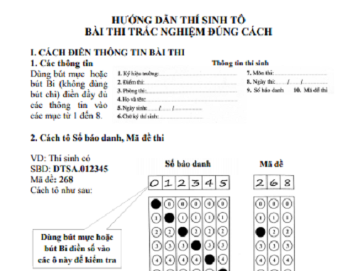 Khi chọn câu trả lời, bạn phải tô đậm và tô kín diện tích cả ô, không gạch chéo hoặc chỉ đánh dấu vào ô được chọn hoặc đánh ký hiệu riêng. Tô đáp án không đúng quy định sẽ không được tính điểm.